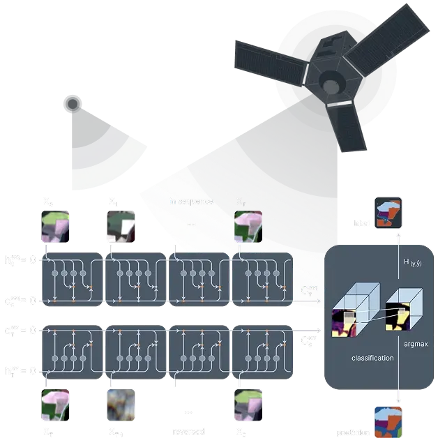 Model: WHY uses a multi-level Conv-LSTM architecture that integrates spatial (CNN) and temporal (LSTM) analysis. Using a full-season time series imagery analysis, the model captures crops' spectral changes across growth stages, significantly improving detection accuracy.