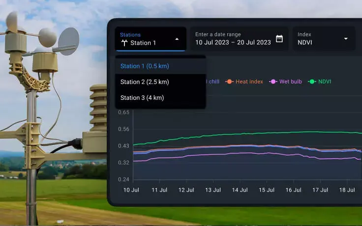 Enhance your weather data analytics by integrating and storing data from your local meteorological stations. While Davis stations are supported, other agricultural weather stations can also be connected by request.