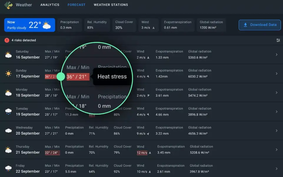 Our agriculture weather solution holds a competitive edge, offering enhanced accuracy and granular insights into climate in your fields, thanks to: