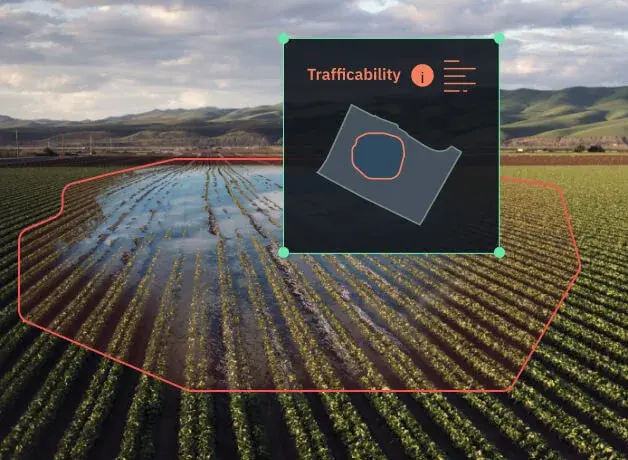 - In our soil trafficability analysis, we rely on different data: soil type, soil granulometric composition, solar radiation, evaporation, precipitation, meteorological forecasts, expert judgment of our scientists team, and our AI technologies.